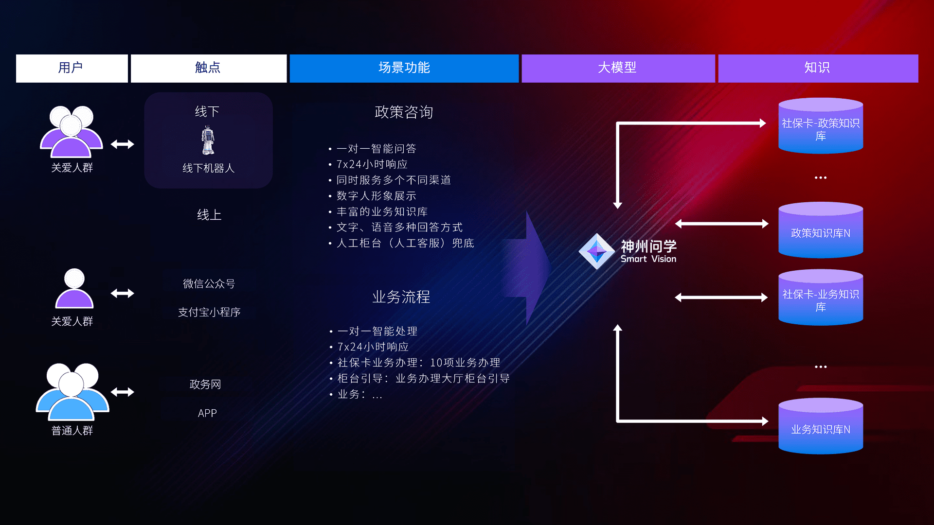 • 线上线下全覆盖:线上提供微信公众号、、、、支付宝小程序、、、政务网、、、、app多种渠道,,,,与线下机器人形成完整服务体系。。。